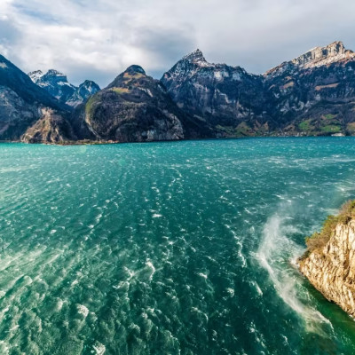 Auf der Leeseite (Alpennordseite) sinkt die Luft ab, wird wärmer und trockener – oft mit starkem, böigem Wind in Talachsen wie dem Reusstal.